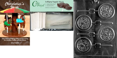 Cybrtrayd Olympic Lolly Chocolate Mold with Chocolatier's Bundle, Includes 25 Lollipop Sticks, 25 Cello Bags, 25 Silver Twist Ties and Chocolatier's Guide
