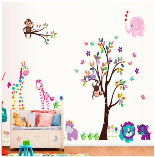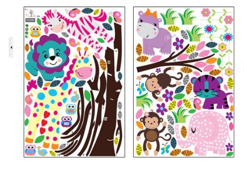 - Title : XXX Large Jungle Animals Decal for Kid's Bedroom Wall Decor Baby Girls Nursery Jungle Tree Wall Decor Sticker 110" Removable Monkeys Owls Zebra Lion Tiger