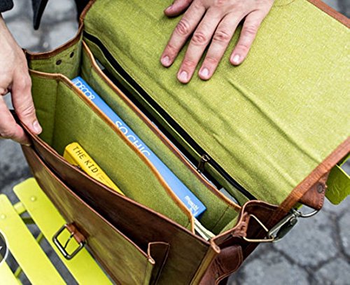 -. Feature : Imported...!!! / Size (WxHxD): approximately 15x11x4 inch (perfect for documents, laptop / notebook, netbook or iPad) / 100% Genuine Leather, We use Olive green heavy duty canvas for all our bags and branded YKK zippers. / Naturally treated, strong but supple goat leather and sturdy canvas lining on this inside. / This is perfect to use as a: messenger bag for men leather, messenger bag for women leather, messenger bag leather, leather golf bag, laptop bag leather, leather bags, leather camera bag, leather crossbody bag, leather computer bag, business leather bag, messenger bags leather, leather laptop bag for men
