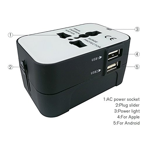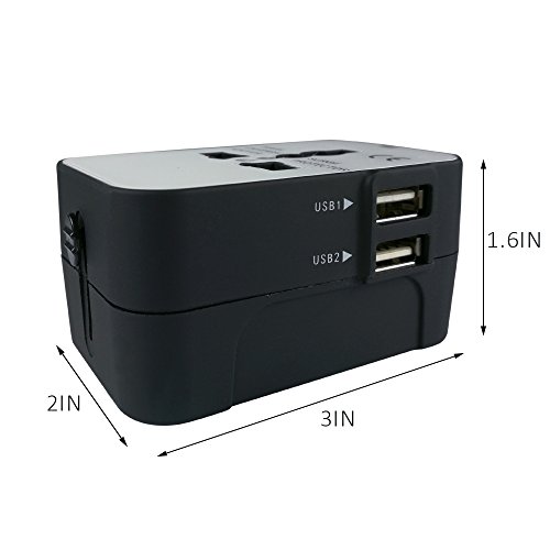 WORLDWIDE ALL IN ONE -- Travel adapter + Dual USB ports,it covers more than 150 countries with US/EU/UK/AU etc. It works in Canada, Russia, Asia, Central America, South America and the Middle East to name a few.