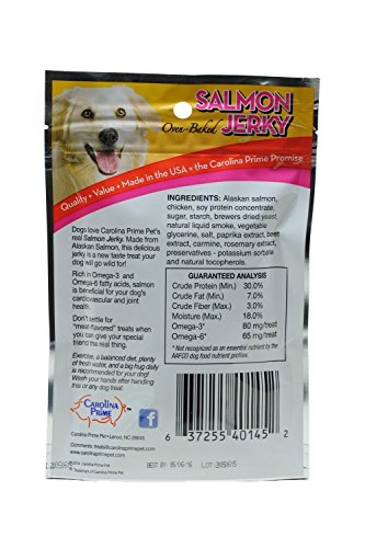 -. Feature : (3 Pack) Carolina P.R.Ime Salmon Jerky - Stay Fresh Pouch 6.0 oz. / Great for Dogs of all sizes / Wheat Free / Promotes cardiovascular health, skin & coat condition, joint health and brain & nerve function / Rich in Omega 3 and Omega 6 Fatty Acids