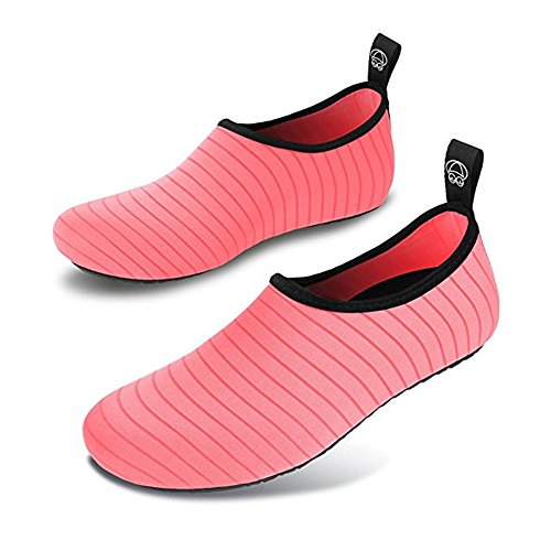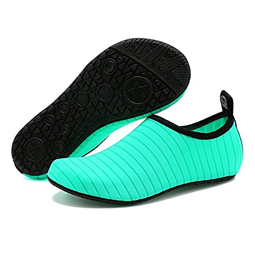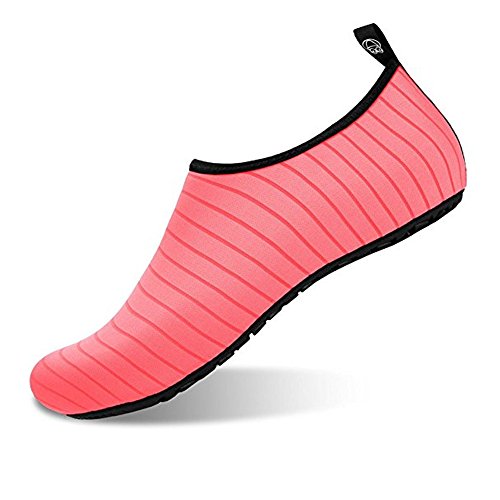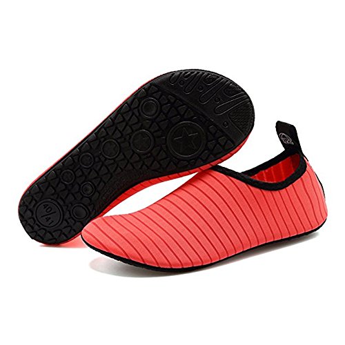 SIZE CHART: US Toddler 13M= Insole Length 6.85in = EU 28-29 US Little Kid 1-1.5M= Insole Length 7.21in = EU 30-31 US Little Kid 2-3M= Insole Length 7.63in = EU 32-33 US Women:3.5-4 = Insole Length 8.03in = EU 34-35 US Women:5.5-6.5/Men:5-5.5M = Insole Length 8.46in = EU 36-37 US Women:7.5-8.5/Men:6-7 = Insole Length 9.17in = EU 38-39 US Women:9.5-10.5/Men:7.5-8.5 = Insole Length 9.69in = EU 40-41 US Women:11-12/Men:9.5-10.5 = Insole Length 10.20in = EU 42-43 US Women:12.5-13/Men:11-11.5 = Insole Length 10.71in = EU 44-45 (1) A multi purpose shoe.you can use the sneakers as a water athletic shoe when you go out.doing some exercises or traveling other country.Packing easily and portable easily because the walking shoes lightweight and Flexing.light weight aquatic shoe. Instead of having to pack two pairs of shoes one for travel and one for swimming you don¡?t need add two shoes tin your luggage. travel light and multi-task with these "two-in-one" water/athletic shoe. (2)A multi use shoe in different conditions.The sneakers is a amphibious shoes which can make sure you can enjoy your life in land or in water.You can use the aqua shoes in surfing,canyoning,kayaking,camping,zip-lining,swimming,jumping,river trekking,paddle rafting ,snorkeling,raining,beach visiting,shopping,traveling,water aerobics,jogging,walking,any water playing or land playing. (3)A multi task shoe in many occasions: You can use the shoes in many occasions,such as:water park,water class,cruise,hanging out,aqua zumba,aqua therapy,water park employees,waterfall hikes,etc.Take our shoes when you go to vacation.when you go to Hawaii,Mexico,Costa Rica , 0