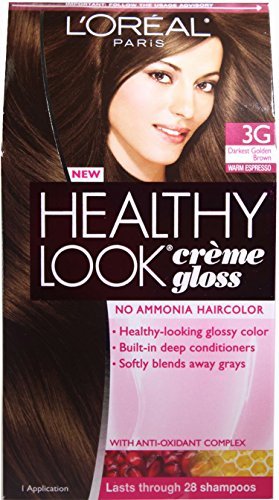 -. Binding : Misc. -. Brand : L'Oreal Paris -. Feature : Non-permanent, ammonia-free hair color that enhances your natural color and counters dullness by adding a high gloss shine / Infused with 100% natural royal jelly and pomegranate to seal in your glossy color, leaving hair shiny, soft and silky / Non-permanent, lasts through 28 shampoos / Discontinued / Pack of 3 -. PackageQuantity : 3 -. ProductGroup : Beauty -. ProductTypeName : BEAUTY -. Title : L'oreal Paris Healthy Look Crème Gloss (Pack of 3)