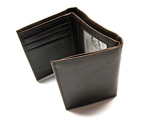 Binding : Apparel Product Description A high quality, genuine leather trifold wallet with a soft, natural texture that will look and feel softer and more comfortable the more you use it. Features 6 credit card slots and 1 currency pocket to store your valuables, plus a clear ID holder in the center for your driver's license or other ID cards. ID window includes a thumb slot to allow for easily removing ID cards. Also includes a removable vinyl insert for additional cards and photos. Equipped with advanced RFID Blocking Secure Technology for added security against unauthorized access to your credit/debit cards with RFID chips. Imported. Package includes: 1 x Embossed Genuine Leather Wallet measuring 3 inches x 4 inches 1 x Gift Box with Logo 0