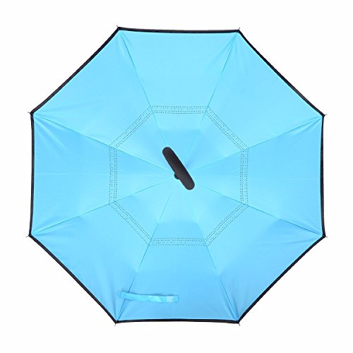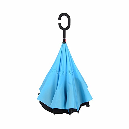 -. Title : Windproof Uv protection Reverse Folding Double Layer Inverted Umbrella Travel Umbrella and Self Standing Inside Out Rain Protection Umbrella with C-shaped Hands Free Handle