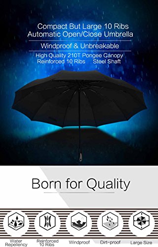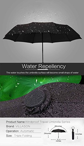 -. Title : VILLASON 60 MPH Windproof Compact Travel Umbrella with Reinforced Unbreakable 10 Ribs, Auto Open & Close One Handed Operation, Sturdy Rain Repellant Large Canopy 46-Inch, Compact But Large When Open