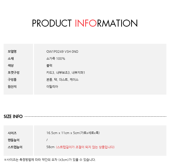구성품본품, 택, 더스트, 케이스