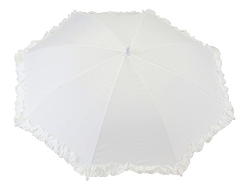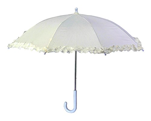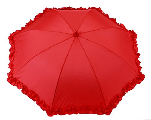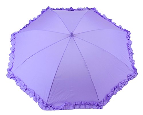 -. Feature : Manual Open Umbrella / Reinforced Steel Ribs / Durable Plastic Handle / Canopy Diameter: 28", Length 24" / This beautiful ruffle umbrella comes in blue, fuchsia, lavender red and white colors
