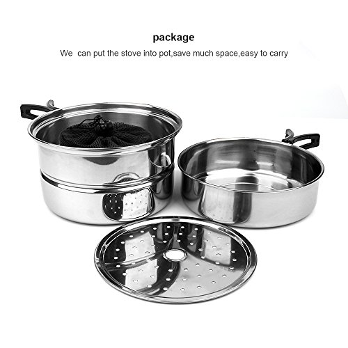 Package Included: 1xFrying pan 1xSoup pot 1xSteamed pad 1xWood Burning Camping Stove 1xBlack net bag If there is any issue with your purchase, please kindly feel free to contact us, we maintain high standards of excellence and strive for 100% customer satisfaction 0