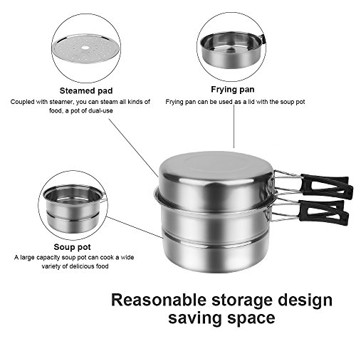 Studio : Satisure Publisher : Satisure Product Description Outdoor Stainless Steel Pot, Portable Camping Stove, 3-4 people camping cookware, Camping Kit Perfect for Camping, Hunting, Climbing Mountain and Fishing