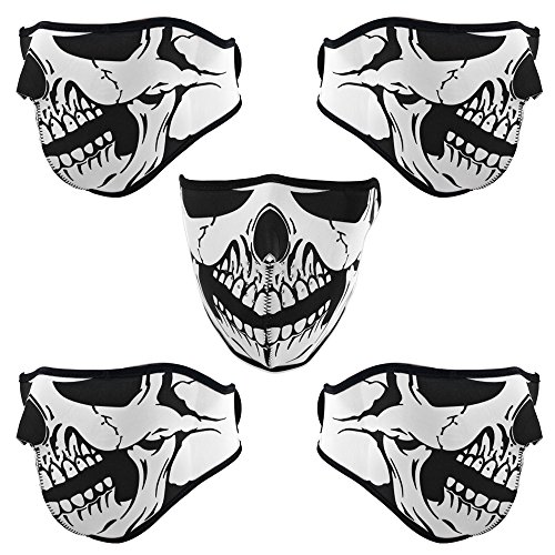 -. Title : 5pcs Unisex Reversible Half Face Mask Skull Warm Neoprene Motorcycle Biker Cycling Ski Snowboard (Black & White)