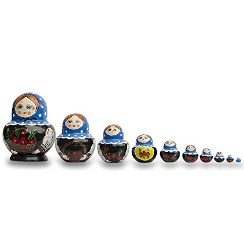 -. Title : 7" Set of 10 Flowers Basket Wooden Matryoshka Nesting Dolls