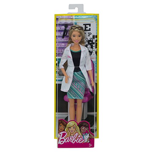 Dream big with Barbie career dolls! Barbie doll can take on any goal, and this eye Doctor doll is ready to bring the world into focus! eye doctors care for the eye health and vision of their patients. Barbie eye Doctor doll is ready to care for her patients' eyes wearing a career-themed outfit complete with accessories that enhance storytelling. Barbie eye Doctor doll is wearing a black top, colorful print skirt, black shoes and white doctor's coat. Her long dark hair hangs in trendy loose waves. A pair of eyeglasses and an exam tool she can hold in her hand are perfect for checking her patients' vision! young minds will love exploring the world of optometry with Barbie eye Doctor doll. Explore all of the Barbie career dolls because with Barbie, you can be anything (each sold separately, subject to availability). includes eye Doctor Barbie doll wearing fashions and accessories, plus eyeglasses and exam tool. Doll cannot stand alone. Colors and decorations may vary.Feature