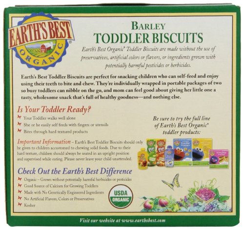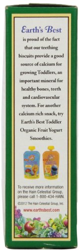 Earth’s Best Organic Toddler Teething Biscuits are specially formulated with vitamins and minerals for your toddler. These wholesome teething biscuits are a perfect texture to help soothe your toddler’s sore gums and a yummy cookie that they will enjoy! Earth’s Best brand proudly offers an array of great-tasting juice, snacks and meals for toddlers made with the same organic ingredients parents have come to expect from the leading brand of organic baby food. Available in fun shapes and flavors, these items are fortified with calcium, iron and zinc. Pure, organic ingredients enable parents to feel good giving them to their children.Feature