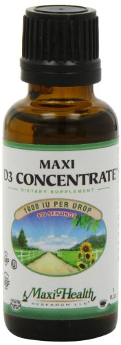 Studio : Maxi Publisher : Maxi Binding : Health and Beauty Product Description Maxi D3 Concentrate is your easy to use liquid source for supplemental vitamin D. Just one drop has 1000 IUs. It supports calcium absorption in the gut and the mineralization of bones. It also supports modulation of neuromuscular control.Maxi D3 Concentrate is made with vitamin D3, the most absorbable form of vitamin d. That is why you want vitamin D3 preferred over vitamin D2.Vitamin D is so important; many food products are fortified with it. If your goal is to have certain amount, you can only really be certain with supplementation. While your body, with enough sunlight can make its own D3, you would need to be in the sun every day. Not only that, as people age, the skin cannot synthesize vitamin D as efficiently. Those who are advised to avoid direct sunlight to protect their skin or keep covered for religious reason, also benefit greatly from supplementation.Try easy to use liquid Maxi D3 Concentrate to support your health.Our uncompromizing commitment to quality begins with selecting the finest raw materials from across the globe, to high standard manufacturing practices in GMP Certified and NSF registered Facilities, in the USA.All Maxi Health products are certified kosher, under the Orthodox Union (OU) and the Udvari Kashruth (UK). Legal Disclaimer: These statements have not been evaluated by the FDA. This Product is not intended to diagnose, treat, cure or prevent any disease. 0