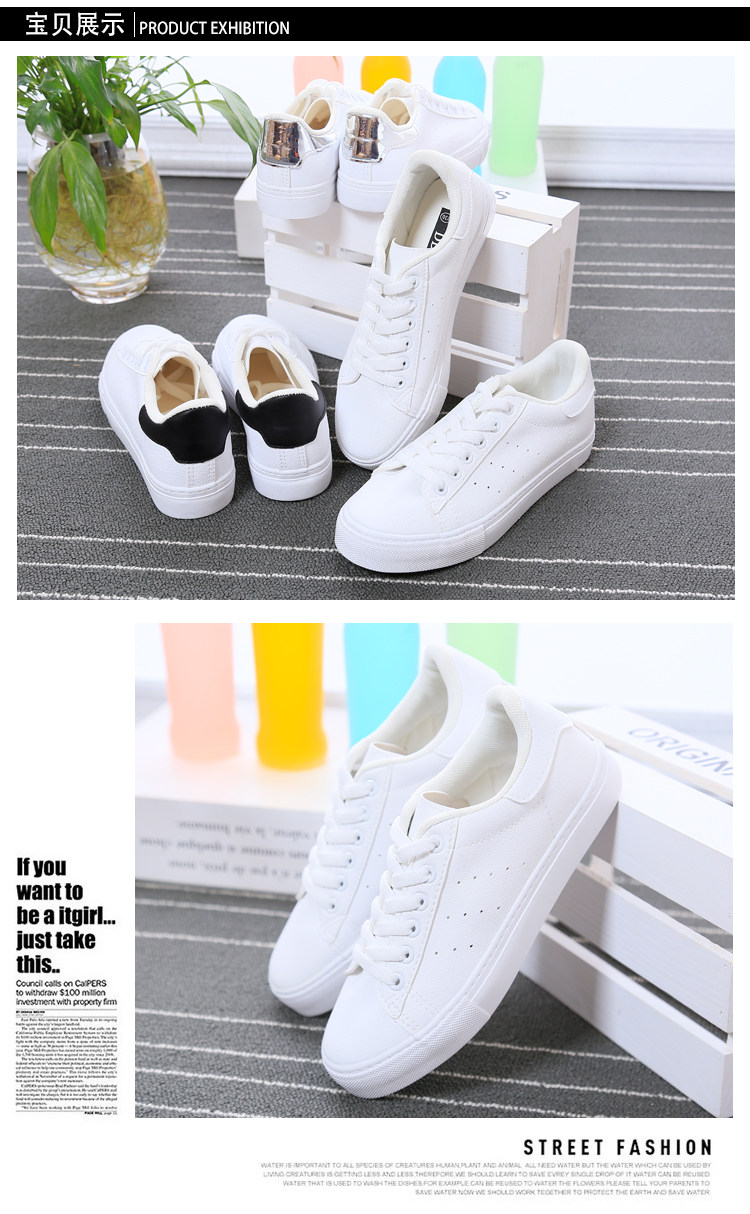 小白鞋女平底系带板鞋运动鞋学生球帆布鞋原宿 ulzzang