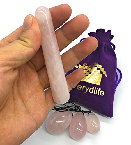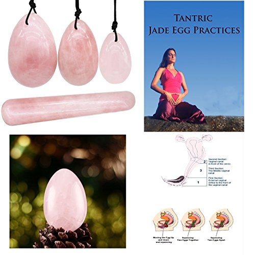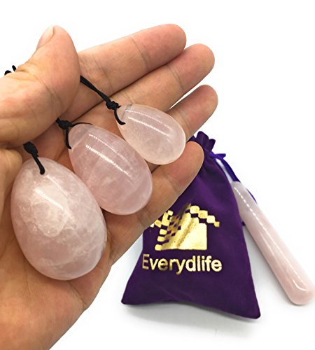 1) 3 Pcs x Rose Quartz Crystal Yoni Eggs With Rope (Big/Medium/Small Each one With cord),1pcs x Massage Stick; 2) Comes with pretty purple velvet jewelry pouches, much easier and convenient than bulky box. Specification: