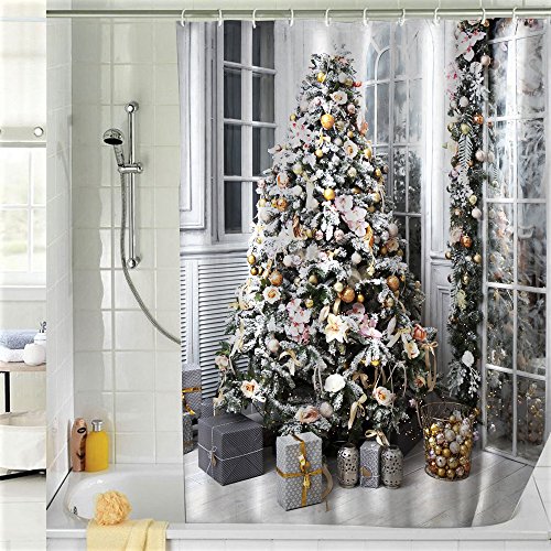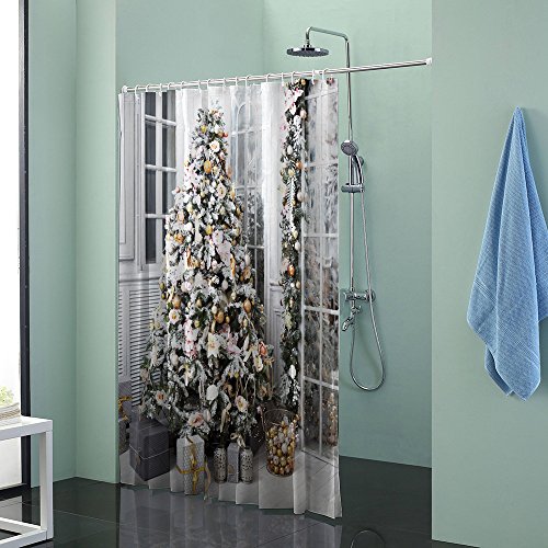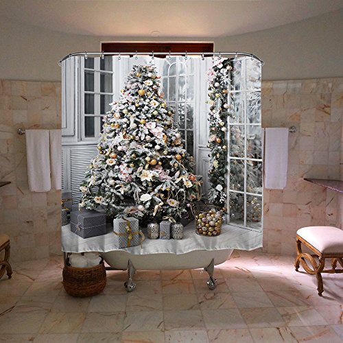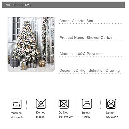 Colorful Star Gift-laden Christmas Tree Design Shower Curtain ,Waterproof&Antibacterial&Eco-Friendly made of 100% Polyester Fabric ,Non Toxic, Odor Free, Rust Proof Grommets 72"x72"