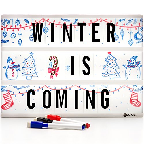 Light Box Cinema LED Sign | All in ONE Marquee Cinematic A4 Lightbox Set with 96 Letters, Symbols & USB Cable | Easy to Style Light Up Box 3 Markers, 20 Blank Cards & Handwriting Speech Bubble