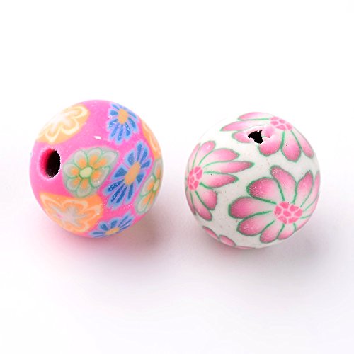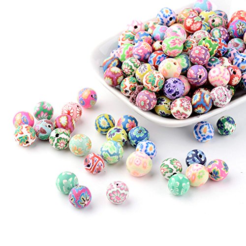 Kissitty 200-Piece Mixed Color Handmade Flower Pattern Polymer Clay Round Ball Beads 10mm for DIY Jewelry Making