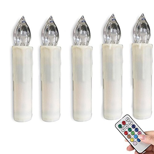 Honfeng Flameless Taper Candles Led Flickering Votive Ivory Candles Battery Operated Multi Color Electric Tealight Remote with Timer Clip Gift Party Wedding Holiday Christmas Tree Decoration 5Pcs