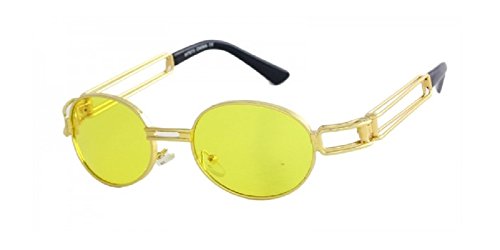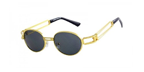 Product Description Slim Round / Oval Classic Luxury Steampunk Sunglasses by Dweebzilla. Design features round lenses on a John Lennon style metallic designer frame. A true homage to the Fashion shades seen worn by rappers of the 80s 90s hip hop music scene. 0
