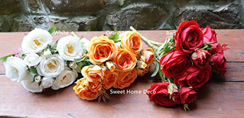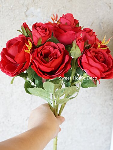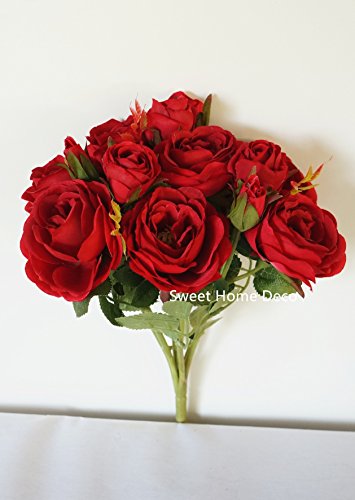 Sweet Home Deco 13'' Silk Open Rose Artificial Flower Bush for Wedding/Home Decorations (Red)