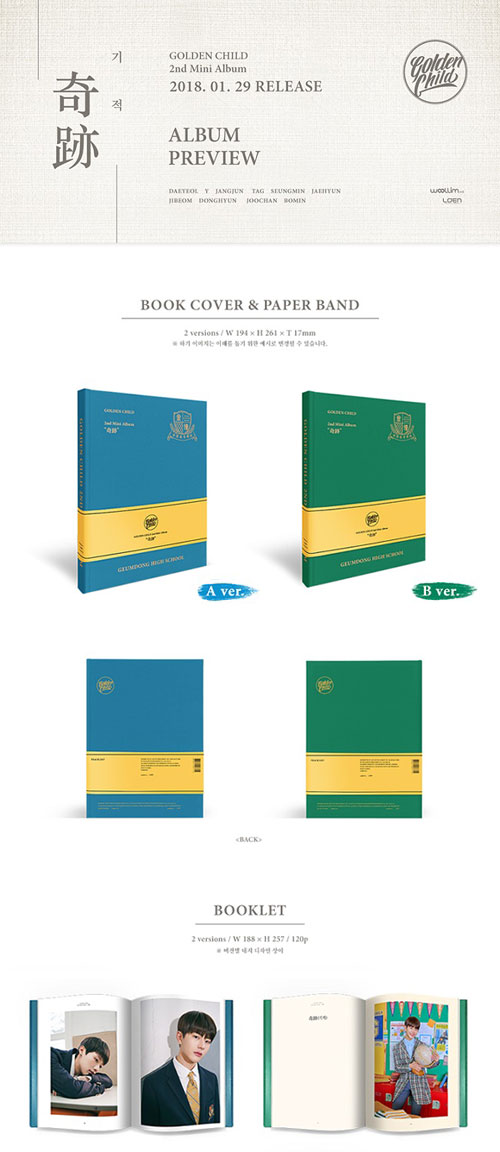 韓国音楽 GOLDEN CHILD(ゴールデンチャイルド) - 奇跡 (バージョン選択/CD+ブックレット120P+フォトカード1種+学生IDカード1種+ネームパッチ1種)+ポスター筒