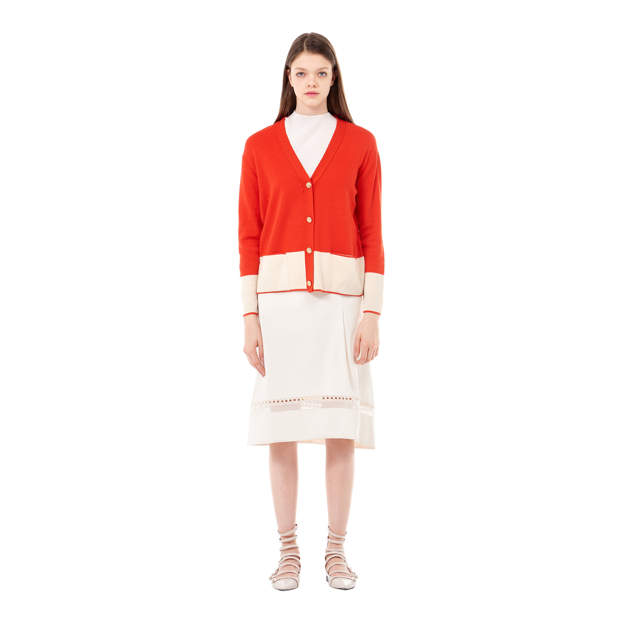 컬렉션 : 2018 Spring/Summer 디자인 포인트 : - 메탈 버튼업 디테일이 돋보이는 캐주얼한 무드의 가디건- 컬러 블록 디테일로 포인트를 더한 디자인- 울 혼방 소재로 가볍고 편안한 착용감을 선사하는 아이템 스타일링 추천 : 베이직한 이너와 스키니진 혹은 슬랙스 팬츠 등에 캐주얼한 포인트를 더해 스타일링 할 수 있음