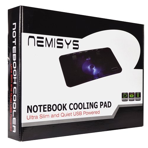 -. Title : Nemisys USB Ultra Slim & Quiet Cooler Pad With 125mm Blue LED Fan For Notebook / Laptop Desktop PC Computer (Black) - Supports up to 17-Inch Notebook / Laptop - Retail Packaged
