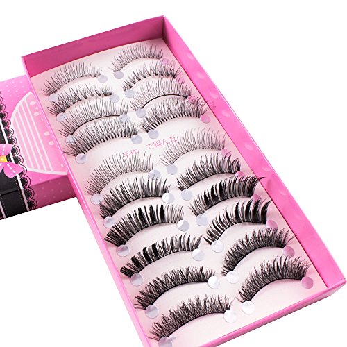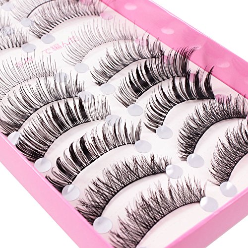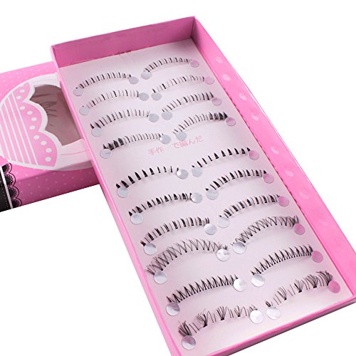 Teenitor 20 Pair 10 Desgin Japanese Style Fake False Upper Lower Bottom Eyelash False Eyelashes With Extension Applicator Tool(10 Pair Upper + 10 Pair Lower)