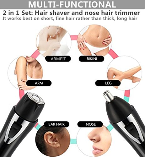 - 2 in 1 Set Multifunctional- Include facial hair shaver and nose hair remover, great for Nose Ear Face Hands Leg Armpit Arm Bikini Line, gives you a quick and smooth trimming experience.