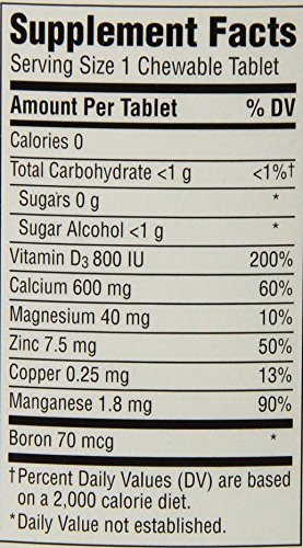 -. Feature : Includes one, 155 count bottle of Caltrate 600+D3 Plus Minerals calcium supplement chewables to nourish your bones. (1) / Convenient on-the-go calcium chewable supplement in delicious cherry, orange and fruit punch flavors. / Dual benefit formula includes calcium and vitamin D3 for bone strength and minerals for flexibility. (1) / Includes essential minerals like zinc, copper and manganese (3) to help support collagen production for strong, resilient bones. (1) / Caltrate Plus Minerals has the most vitamin D3 to help maximize calcium absorption to support strong, healthy bones. (1,2) / Just two tablets a day provides the total recommended daily amount of calcium with advanced levels of vitamin D to help optimize calcium absorption / Each tablet also contains five fortifying minerals important for healthy bone formation / Sólo dos tabletas al día proporcionan la cantidad diaria de calcio recomendada, con niveles avanzados de vitamina D para ayudar a optimizar la absorción de calcio / Cada comP.R.Imido contiene también cinco minerales fortificantes, importantes para la formación de hueso sano / Contiene 600 mg (0,02 onzas) más un suplemento de 400 IU de vitamina D por tableta / Sólo dos tabletas al día proporcionan la cantidad diaria de calcio recomendada, con niveles avanzados de vitamina D para ayudar a optimizar la absorción del calcio