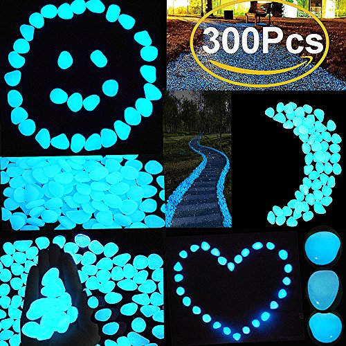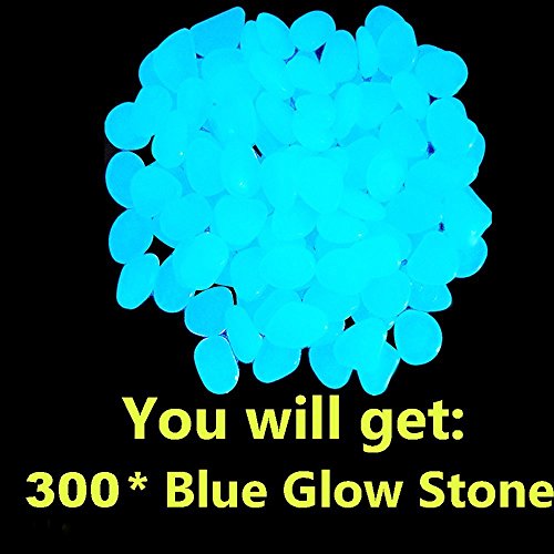 Outee 300 PCS Glow Pebbles Stones Glow in the Dark Stones Garden Decor Glow Gravel Stones for Garden Walkway, Man-made, Blue