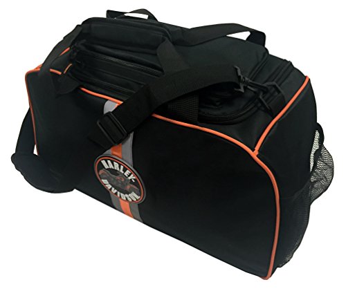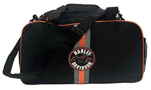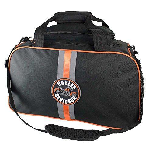 -. Brand : Harley-Davidson -. Color : Black -. Department : mens -. EAN : 0889114043642 -. Feature : Water resistant fabric / Black Nylon Canvas with Reflective Stripe and Orange Piping / Rubber Harley-Davidson® Motorcycle Patch on the front side / Two heavy duty carry straps with cushioned shoulder pad and Velcro grip / Dimensions: 22"L x 12"W x 10"H -. Label : SGI -. Manufacturer : SGI -. Model : 7180651 -. MPN : 7180651 -. PackageQuantity : 1 -. PartNumber : 7180651 -. ProductGroup : Apparel -. ProductTypeName : LAGE -. Publisher : SGI -. Size : 22"L x 12"W x 10"H -. Studio : SGI -. Title : Harley-Davidson Deluxe Duffel Bag, Harley Emblem Reflective Stripe Black 7180651 -. UPC : 889114043642