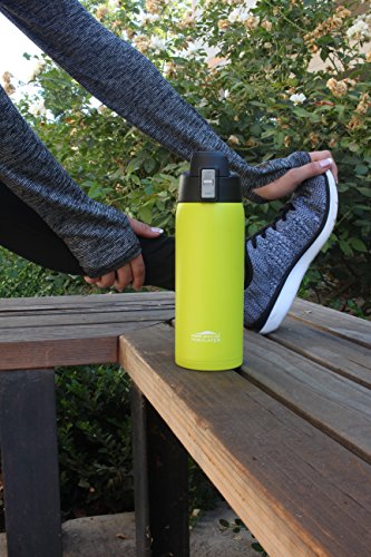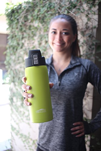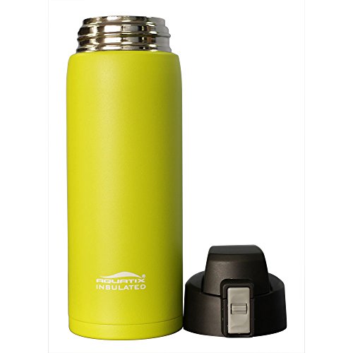Aquatix (Lime Green, 21 Ounce) Pure Stainless Steel Double Wall Vacuum Insulated Sports Water Bottle with Convenient Flip Top - Keeps Drinks Cold for 24 Hours, Hot for 6 Hours