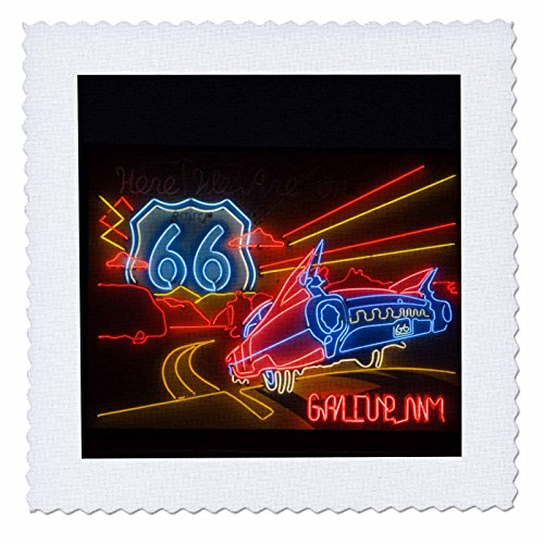 3dRose qs_92986_1 Route 66 Neon Sign-US32 TDR0060-Gallup Chamber of Commerce-Trish Drury Quilt Square, 10 by 10-Inch