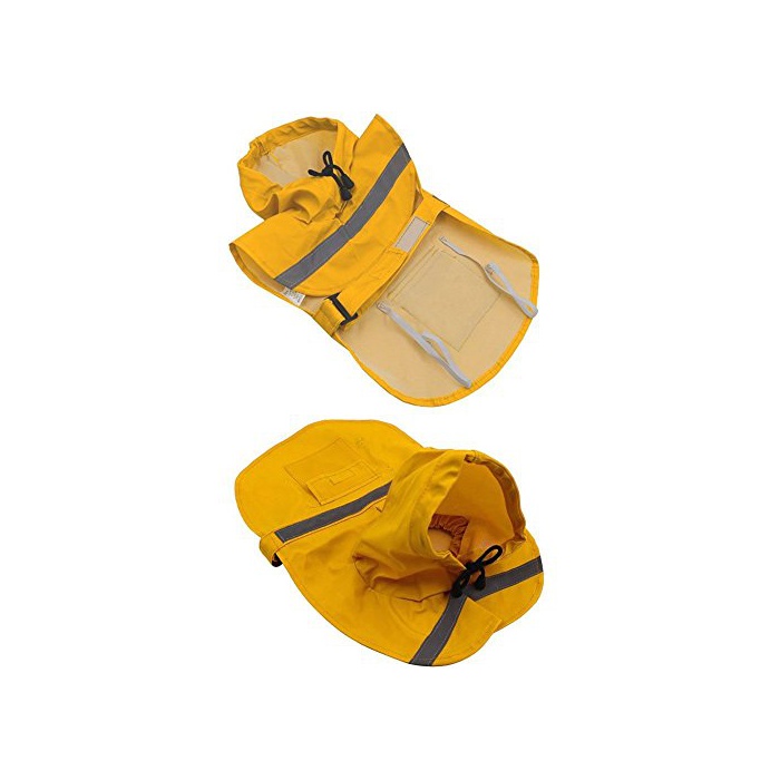 원본상품명:犬用レインコ?ト ポンチョ 着?簡? 小型犬~大型犬用 フ?ド付き 折りたためる 防雪 防水 防風 カッパ 梅雨?策 反射テ?プ付き 夜道でも安全 3色 (M, イエロ?)