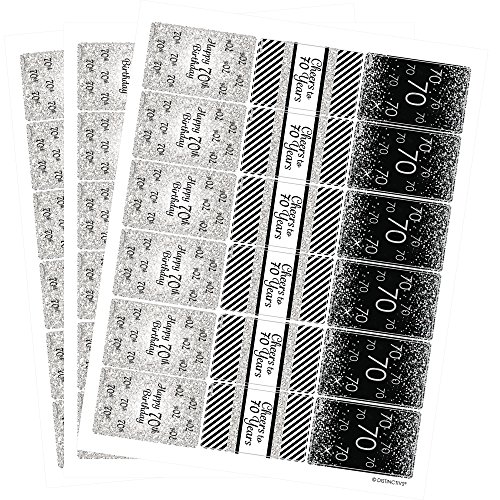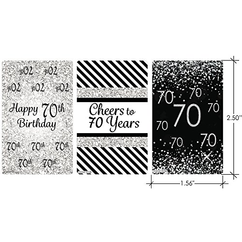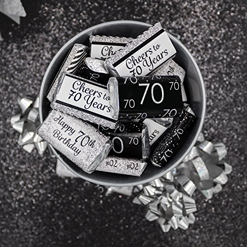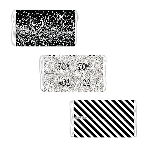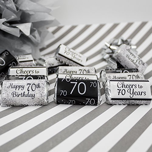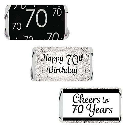 Black and Silver 70th Birthday Party Favors - Mini Candy Bar Wrapper Stickers (54 Count)
