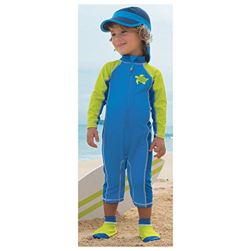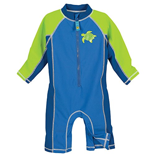 -. Binding : Misc. -. Brand : One Step Ahead -. Color : Blue -. Department : baby-boys -. Feature : This is surfer-style sun protection to the max; full-coverage UPF 50+ surf suit is so sporty, stretchy, and lightweight that boys love wearing it - at the pool, the beach, or anywhere that sun exposure is a concern / Premium grade, high-tech nylon/elastane blended fabric is sleek and stretchy, providing all-day UPF 50+ sun protection; this chemical-free, non-chafing, quick-drying fabric was specially designed for sensitive skin, keeping him cool in the sun and warm in the water / Premium features include: generous stand-up collar for comfortable neck protection; zipper guard protects little chins; inseam leg snaps make diaper or swim diaper changes quick and easy; guaranteed to last all season and keep its shape / Works great with the Sun Smarties Navy Swim Diaper underneath and a host of other coordinating swimwear items, available for purchase separately / The perfect combination of practicality, safety, comfort, and style using premium fabrics and workmanship - once again they have earned the name of One Step Ahead; don't settle for second best -. ProductGroup : Apparel -. ProductTypeName : SWIMWEAR -. Title : Sun Smarties Baby Toddler Boys UPF 50+ One Piece Surf Suit Sunsuit