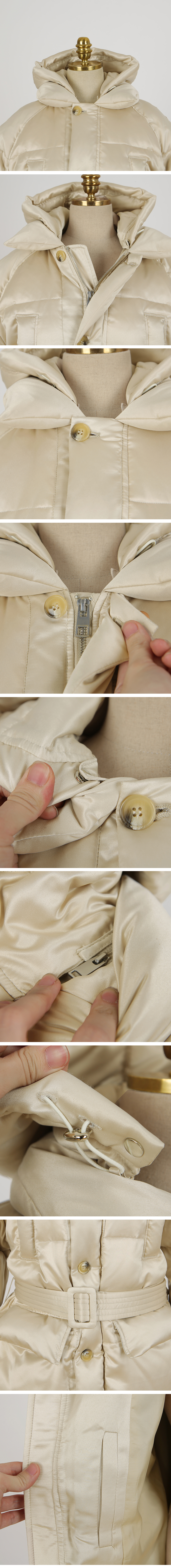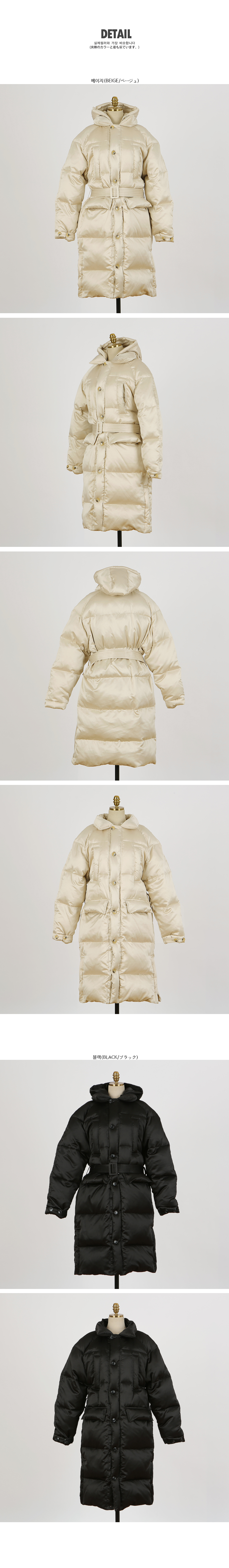 고급스러우면서 캐쥬얼한 느낌의 오리털 패딩을 소개해요. 오리털 충전재로 따뜻하게 입을 수 있는 상품으로 풍성한 핏감으로 보기에도 포근하게 보여지는 패딩이랍니다. 나그랑 소매에 끝단에는 단추로 벌룬감 연출을 할 수 있구요, 넥에는 쿠션처럼 빵빵한 라인으로 따뜻하게 목까지 감싸주며 지퍼와 단추 이중 클로징으로 안정감있는 클로징을 도와준답니다. 바스트부분 포켓과 골반부분 포켓으로 실용성있는 디자인! 골반부분 포켓은 단추로 클로징이 가능하며 소지품을 소장하기에 안정감이 있으며 벨트가 세트로 준비되어 다양한 연출을 해볼 수 있어요. 밑단 양사이드에는 스냅단추로 오픈, 클로징이 가능한 트렌디한 디테일을 주었답니다. 무릎까지 덮는 기장감으로 더 따뜻하게~ 블랙,베이지 두 컬러 진행해요. FREE사이즈로 준비되었구요, 44사이즈 분들부터 66사이즈 분들까지 모델처럼 루즈한 핏감으로 착용가능하답니다. size tip모델착용 사이즈는 Free(44-66) 입니다