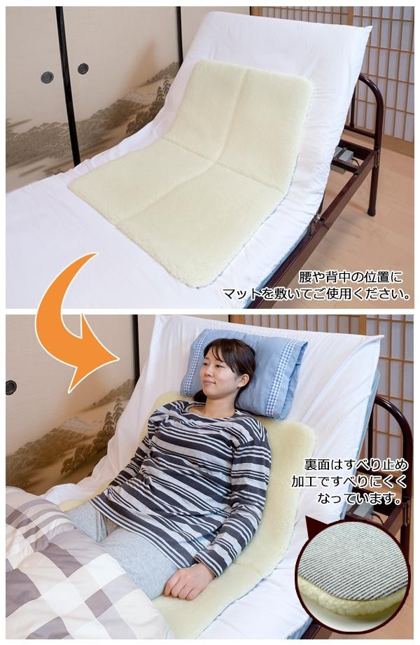 | 寝返りを打ちやすいなめらかな表面生地。厚み約2.5cmなので腰や背中の痛みを軽減させます。裏面にはすべり止め加工が施されています。 |