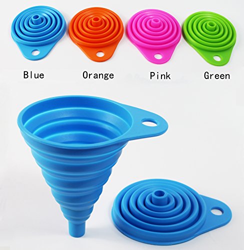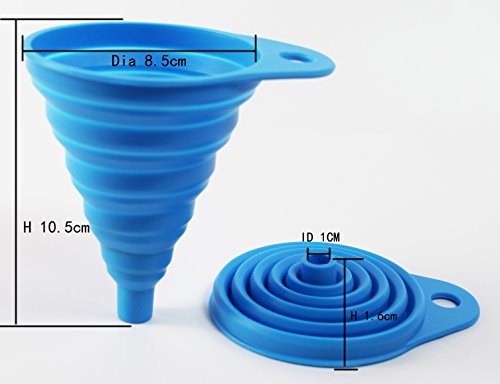 Vinstar Silicone Foldable and Collapsible Kitchen Funnel, Set of 2, 4 Colors Available (Blue)