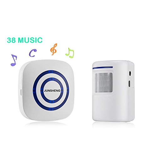 Long Range Wireless Home Driveway Alarm System 1 Infrared Motion Sensor and 1 Plug-in Receiver with 38 Chimes