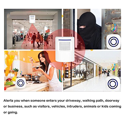 3. 【Long Distance】-- Working Range up to 328 feet (100 meters) between receiver and transmitter, allowing you to place it a good distance from the receiver to warn you of arrival and departure of family members, unwanted guests or solicitors, or anyone who visits your home or business.
