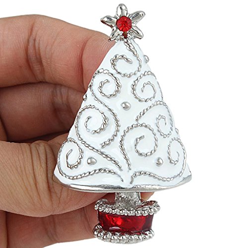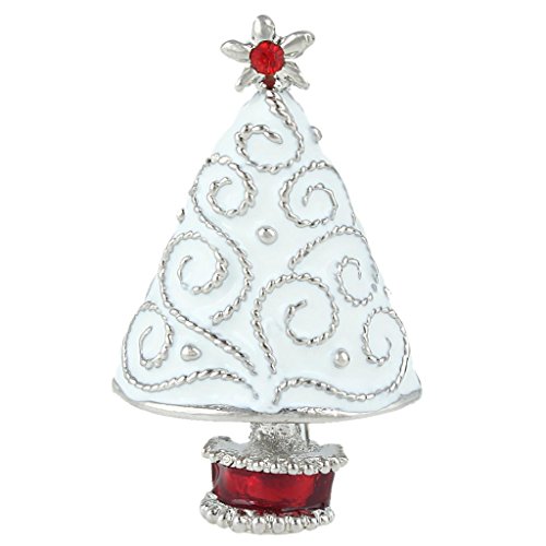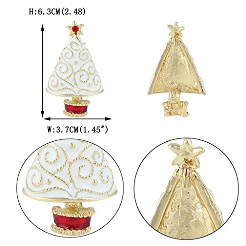 EVER FAITH Star Filigree White Christmas Tree Brooch Clear Austrian Crystal Enamel Gold-Tone