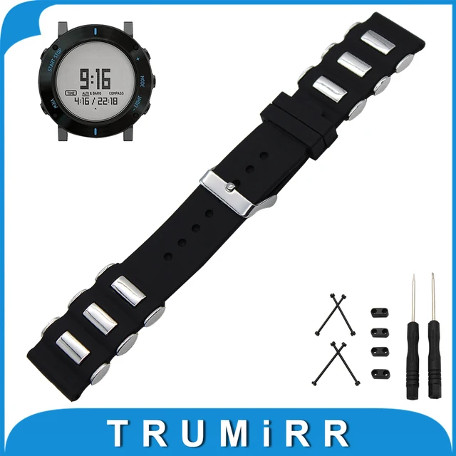| [해외] 24 미리메터 실리콘 고무 시계 밴드 + 러그 어댑터 + 도구 suunto 코어 스테인레스 스틸 핀 버클 스트랩 손목 벨트 팔찌 블랙 |