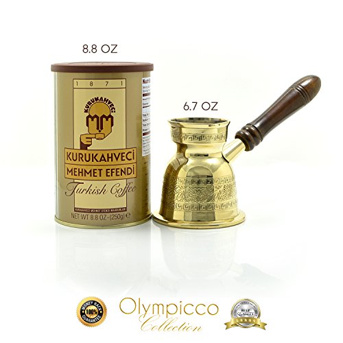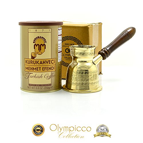 Greek Turkish Coffee Pot Solid Brass Thickness of 2.8 3mm - Handmade Elegant patterns with coffee flowers and Greek key design with removable Wooden Handle - OLYMPICCO Collection!? There are plenty of coffee pots available these days that come in different styles and designs. But there is one breakthrough product that is now starting to captivate the attention and interest of many coffee lovers and enthusiasts out there. This product is none other than the thickest Greek Turkish Coffee Pot Solid Brass, handmade with elegant flower patterns and Greek key borders design. This Turkish Coffee Pot is inspired from Olympicco Collection.? FIVE Reasons WHY should people BUY The Greek Turkish Coffee Pot, OLYMPICCO Collection?? 1) Excellent pot creating quality with durable and meticulous finishes. Glaze and soldering are made of 100% tin that guarantees lead-free mixing therefore it will not be oxidized.? 2) This top quality Greek/Turkish coffee pot comes with removable wooden handles that also provides ultimate comfort upon every use.? 3) Available in three sizes, 6.7 Oz , 11.6 Oz and 16 Oz. These Turkish coffee pots are designed to particularly make the best ground coffee. The solid brass material contributes to the coffee's great taste. Brass is also said to be better than copper since this is a tough material and this remain shiny even for longest years.? 4) The Greek Turkish Coffee pot can impart a refreshing and great taste to your coffee. This coffee pot has become a favorite possession to so many people especially those who love Greek/Turkish coffee.? 5) OLYMPIC TRADING Offers 100% Money-Back and Satisfaction Guarantees.? Advantages:? If you are looking for the best coffee pot that boils easily and makes the most delicious coffee, then the Greek Turkish Coffee Pot from OLYMPICCO Collection is the best choice. 0 |