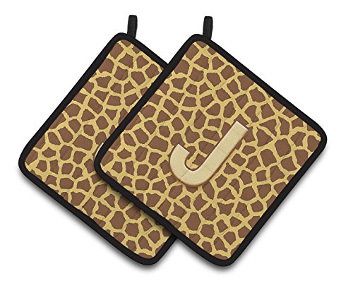 Caroline's Treasures Monogram Initial J Giraffe Pair of Pot Holders CJ1025-JPTHD, 7.5HX7.5W, Multicolor