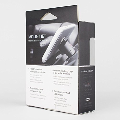 The World's Smallest and Market's Strongest Magnetic Car Mount Is Now Available On Amazon Do you think that keeping your phone within your viewing field while driving is impossible? Have you wasted money on heavy, bulky mounts that constantly detached, throwing your phone on your lap or feet and even scratching or destroying it? We Know What You Need - We compiled thorough data on user car mount demands, and combined them with our expertise, to provide the best car mount you could ever have. Sturdy Base, Firm Clip, Powerful Magnetic Ring. Built from the highest quality, heavy duty, anodized aluminum alloy and featuring a metal ring that adheres with industrial strength adhesive by 3M, either to the back of your phone or its case, the Mountie is made to last and protect your phone from external road forces, shock movements an arbitrary swivels. Lightweight and Portable: Simply detach it and use it in any of your family's cars and fear not should you be in the process of buying a new car model. As it perfectly mounts on ANY vertical or horizontal vents, the Mountie is a wise, long-term investment for long-term, in-car phone mounting and display accessory. Clip, Mount and Go: All it takes is three, simple motions to stay connected and navigate with ease. We can guarantee you NO other vent car mount can beat the Mountie's lightness, stability and powerful hold. What's In The Box: 1 x Mountie Vent Car Mount and 1 x Metal Disc With Adhesive. Try It Out For Yourself Today and Safely Display Your Phone On The Go! What are you waiting for, then? Click Buy Now Before We Run Out Of Stock!Feature